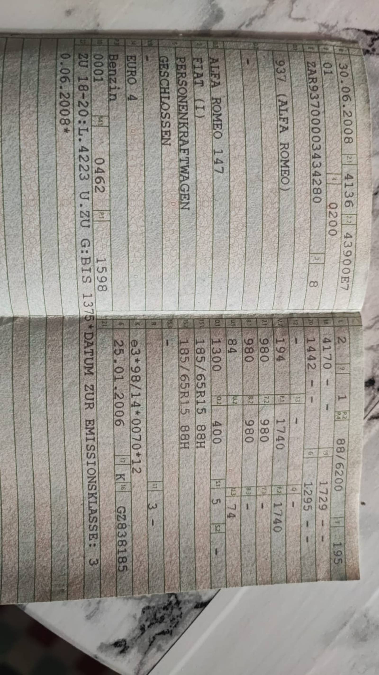 | Fahrgestellnummer: | ZAR93700003434280 |