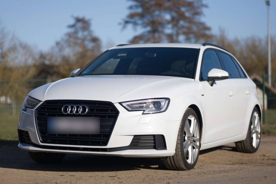 Audi A3 Sportsback Sport, Sitze mit Teilleder. Kratzer Stoßstange hinten ca. 3cm, Kratzer Stoßfänger vorne oben ca. 1cm, Stoßfänger vorne untern ca. 3cm. Kratzer in Alufelge