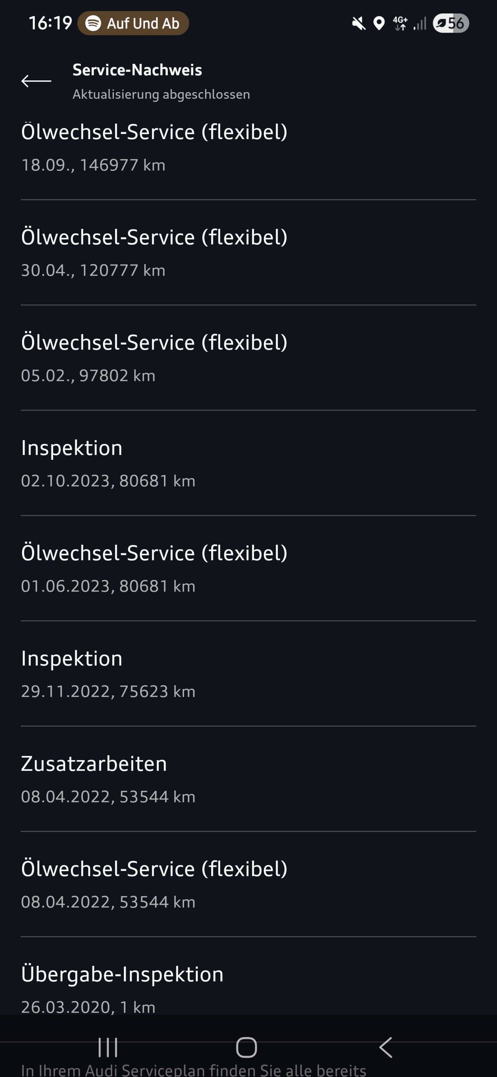 | Service Häufigkeit | Service wurde lückenlos durchgerührt |