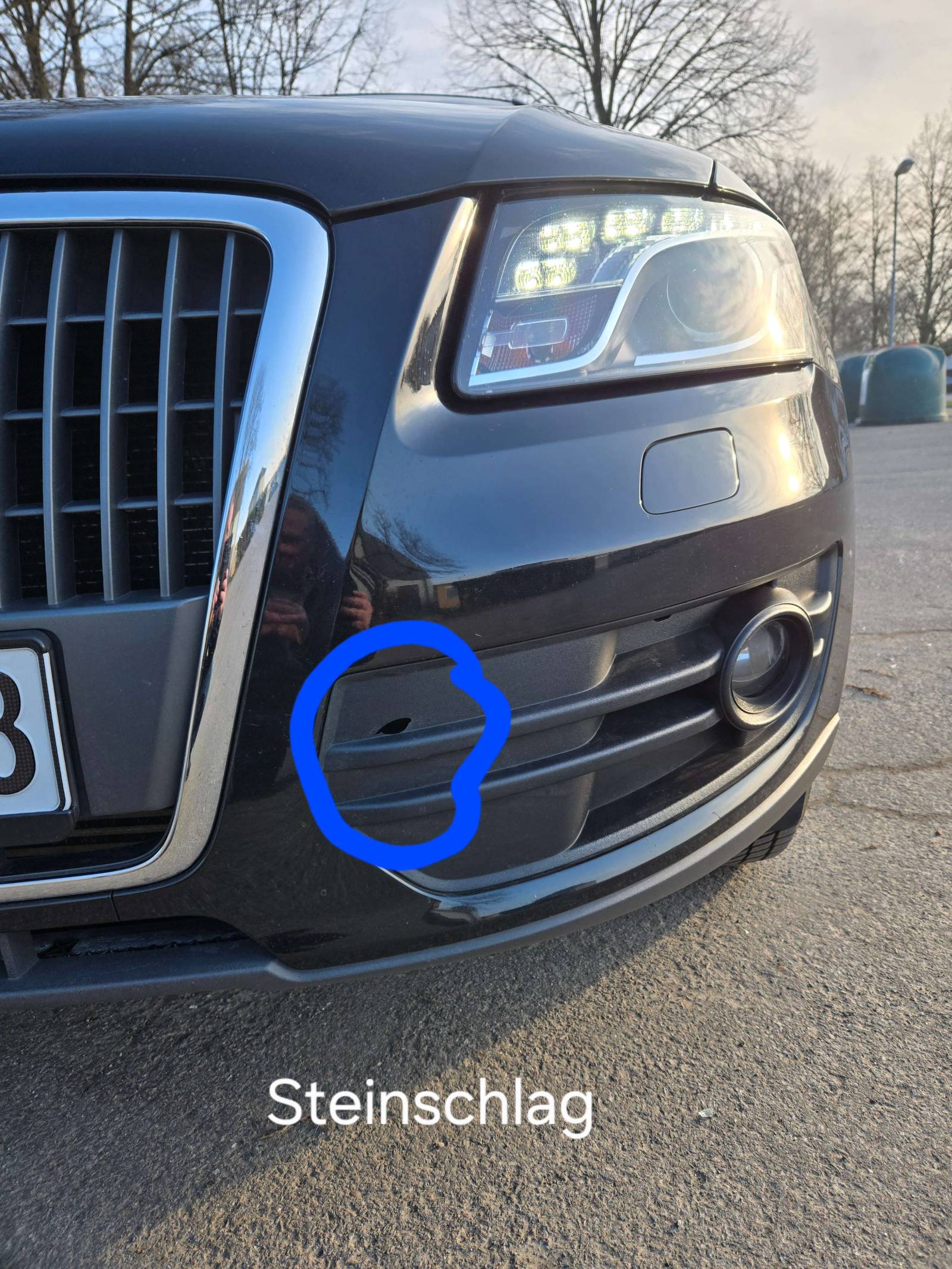 Vorne am stosstange beschädigung durch steinslag. Sihe fotos