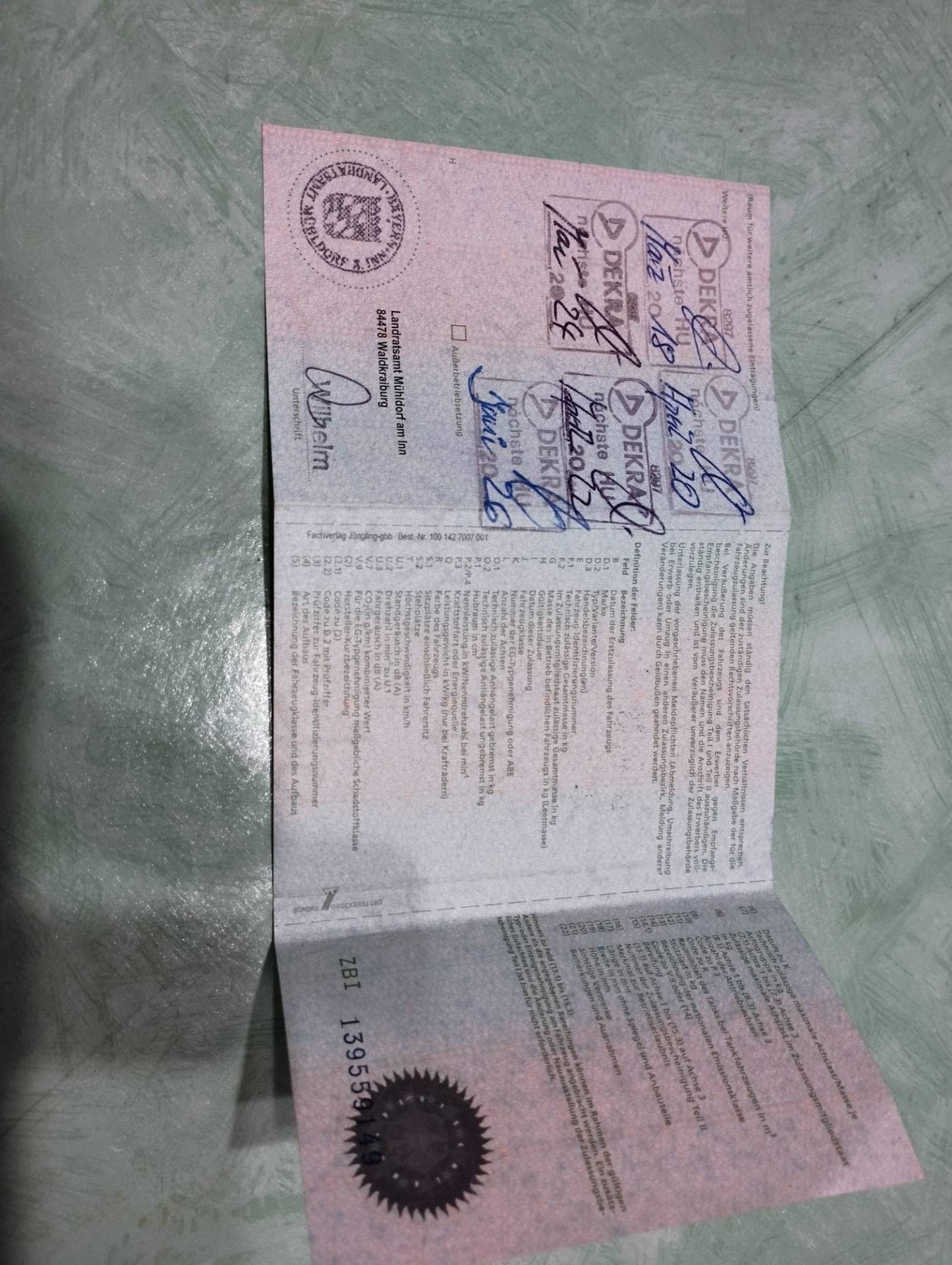 | Verfügbarkeit des Fahrzeugbriefs | Keine Angabe |