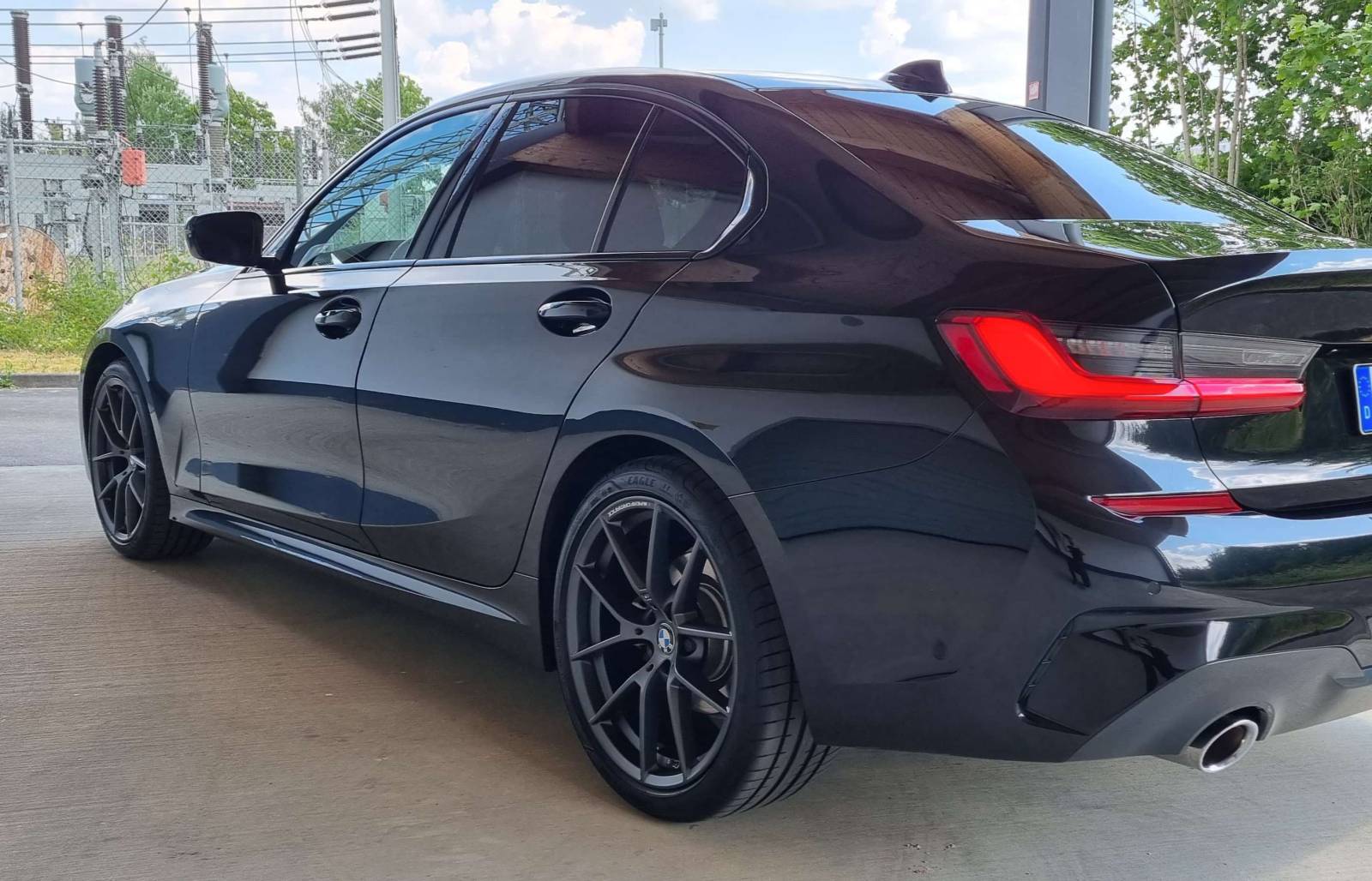 Die Sommerreifen sind auf 19-Zoll Performance-Felgen, die Winterreifen auf 18-Zoll Alufelgen. Alle acht Reifen sind in gutem Zustand und haben genug Profil für ein paar Jahre.