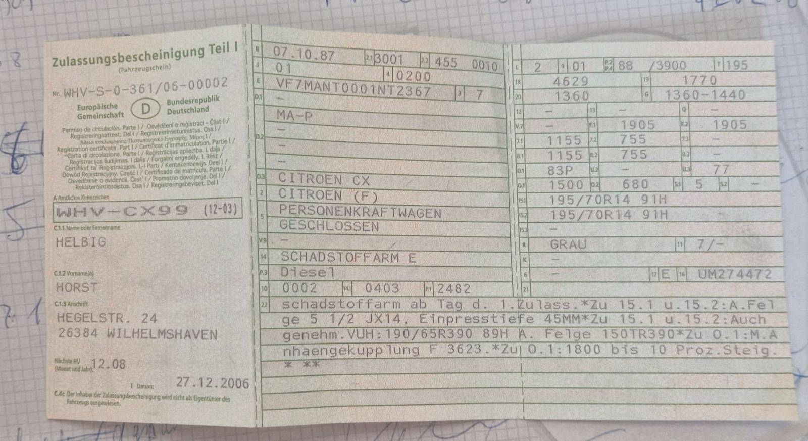 | Verfügbarkeit des Fahrzeugbriefs | Ja Fahrzeugbrief liegt vor |