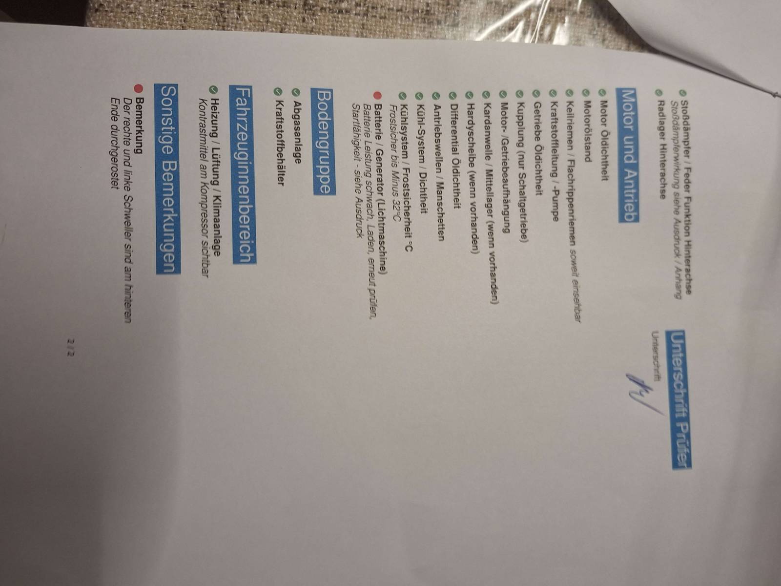 | Funktion der Klimaanlage | Klimaanlage funktioniert einwandfrei. |