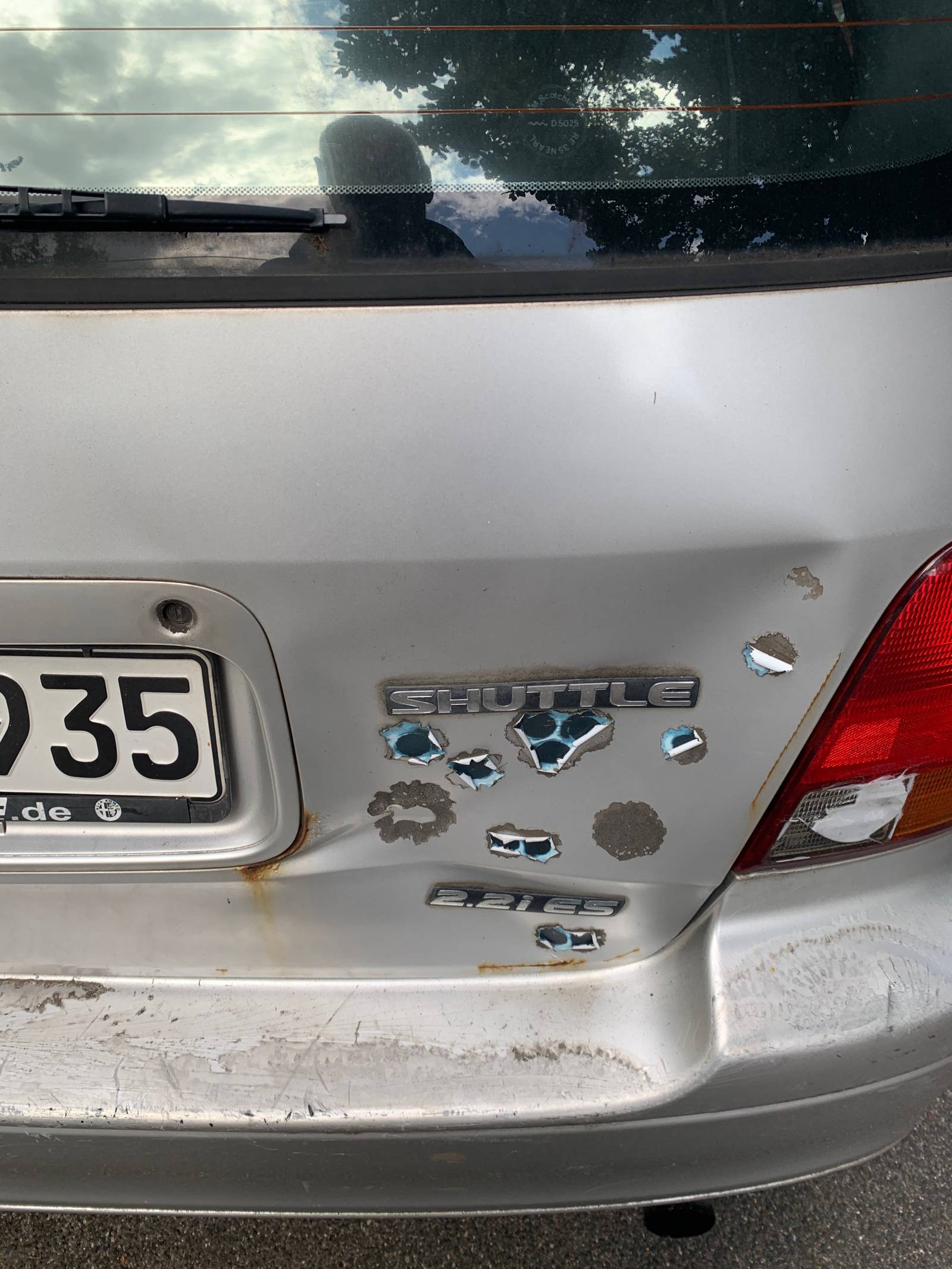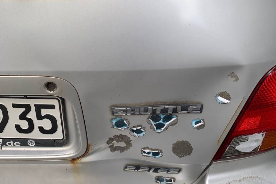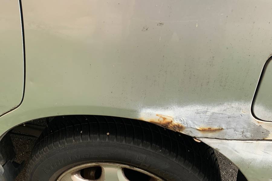 Das Fahrzeug hat eine defekte Heckklappe und die Nebelschlussleuchte fehlt.Es hat Rost an den Radläufen und der Ausgleichbehälter für die Bremse ist defekt.