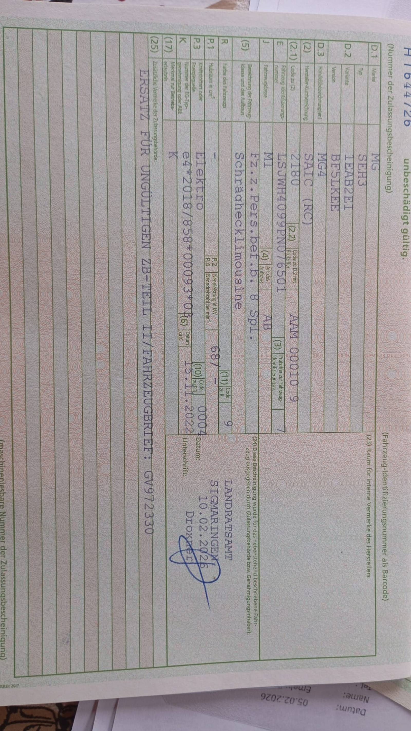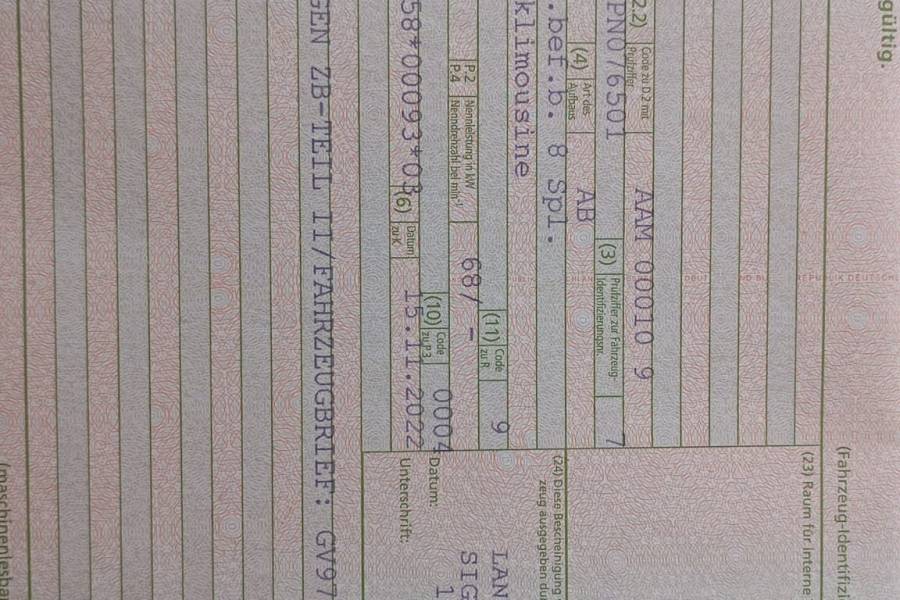 | Verfügbarkeit des Fahrzeugbriefs | Ja Fahrzeugbrief liegt vor |