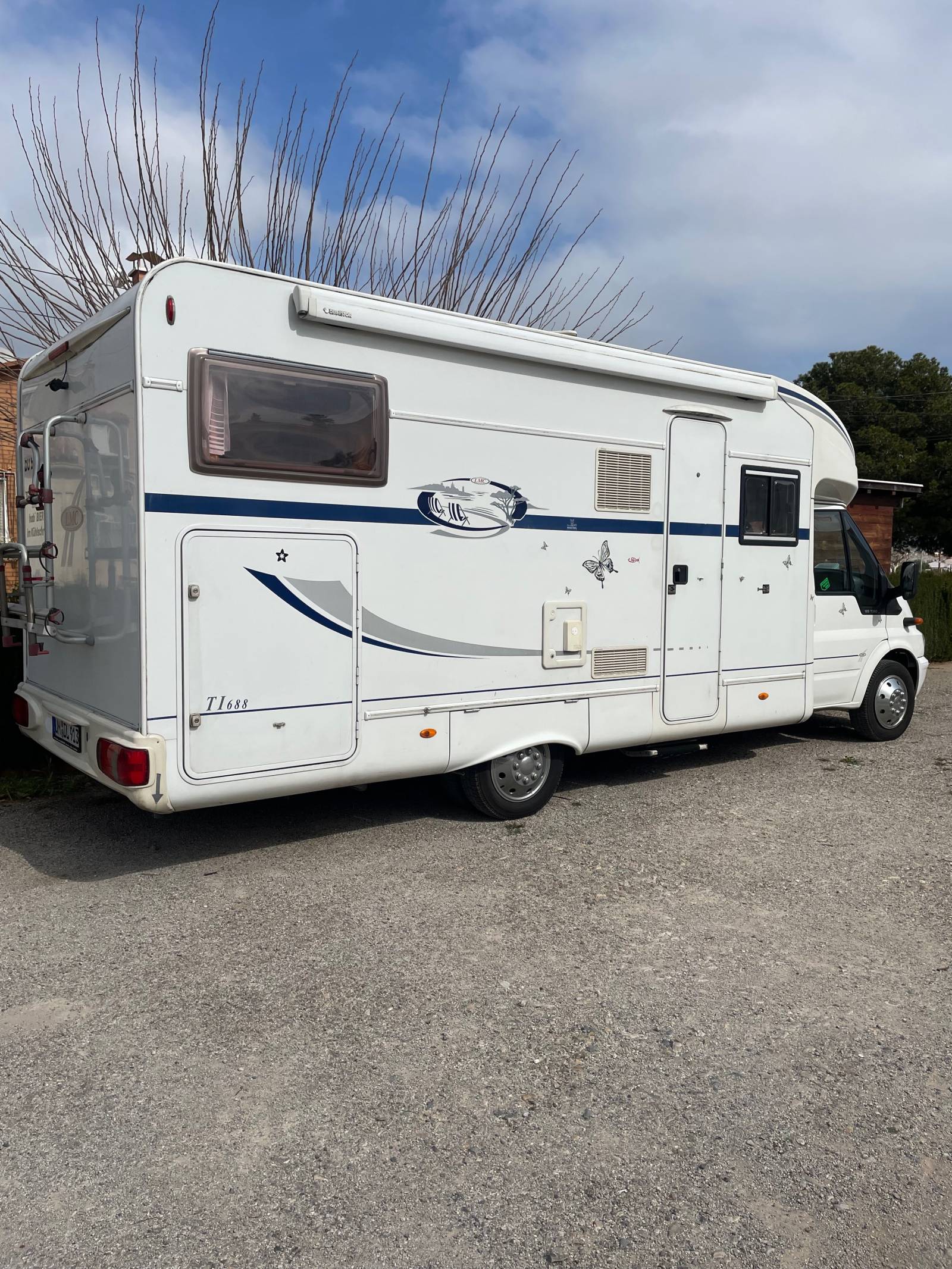 Ford TI 688, mit LMC Aufbau. Automatik Getriebe, Solar, neuer Batterie, Fahrradträger, große Heckgarage, elektr. Trittstufe, Pilotsitze, großes Heckbett, WC mit Sog, Dusche und Waschbecken. Kühlschrank mit separaten Gefrierfach, TV mit automatischer Satschüssel, 3 Flammenherd, Essecke umbaubar zum Bett, viel Stauraum,