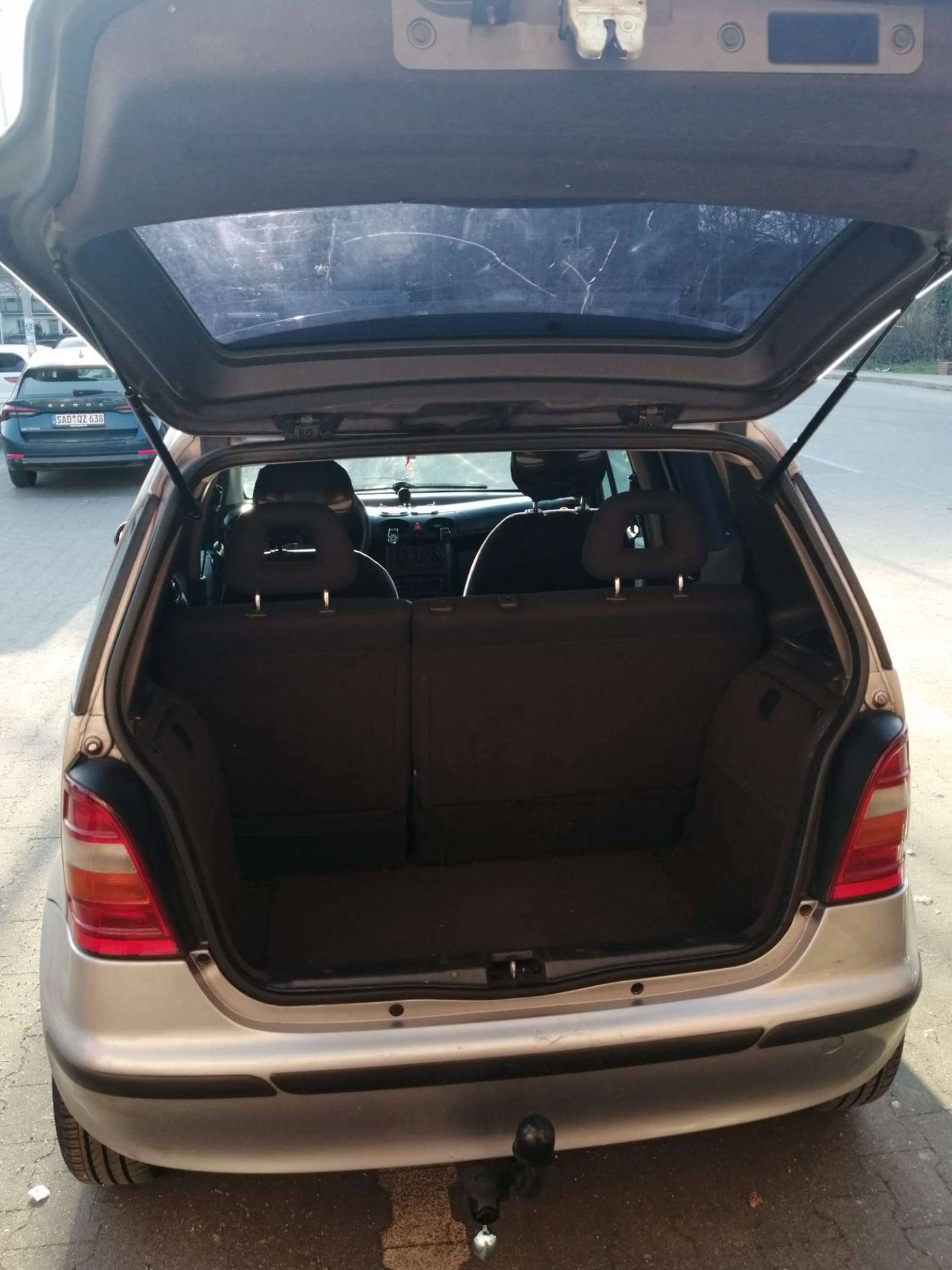 Das Auto besitzt eine Anhängerkupplung und hat nie eine Panne gehabt. Hat auch keinen sichtbaren Rost nur Flecken von alten Aufklebern.
