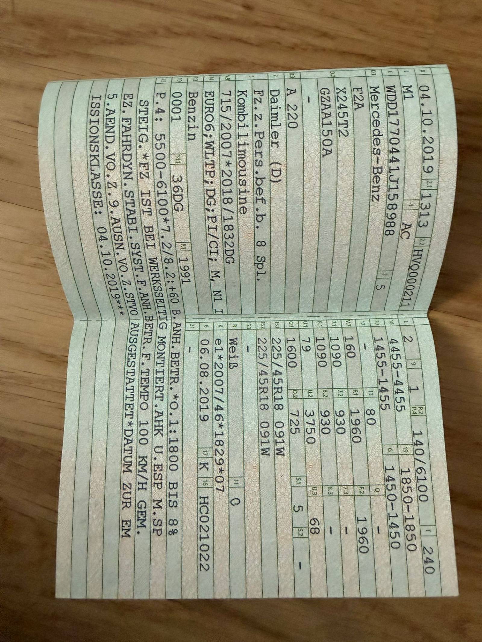 | Verfügbarkeit des Fahrzeugbriefs | Keine Angabe |