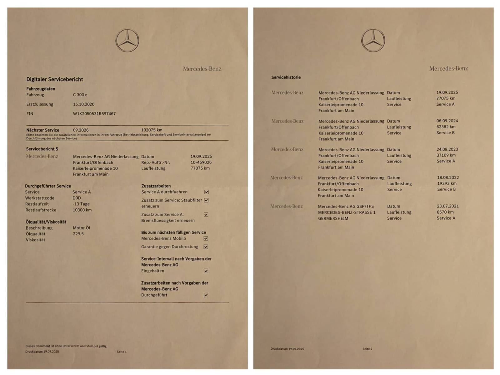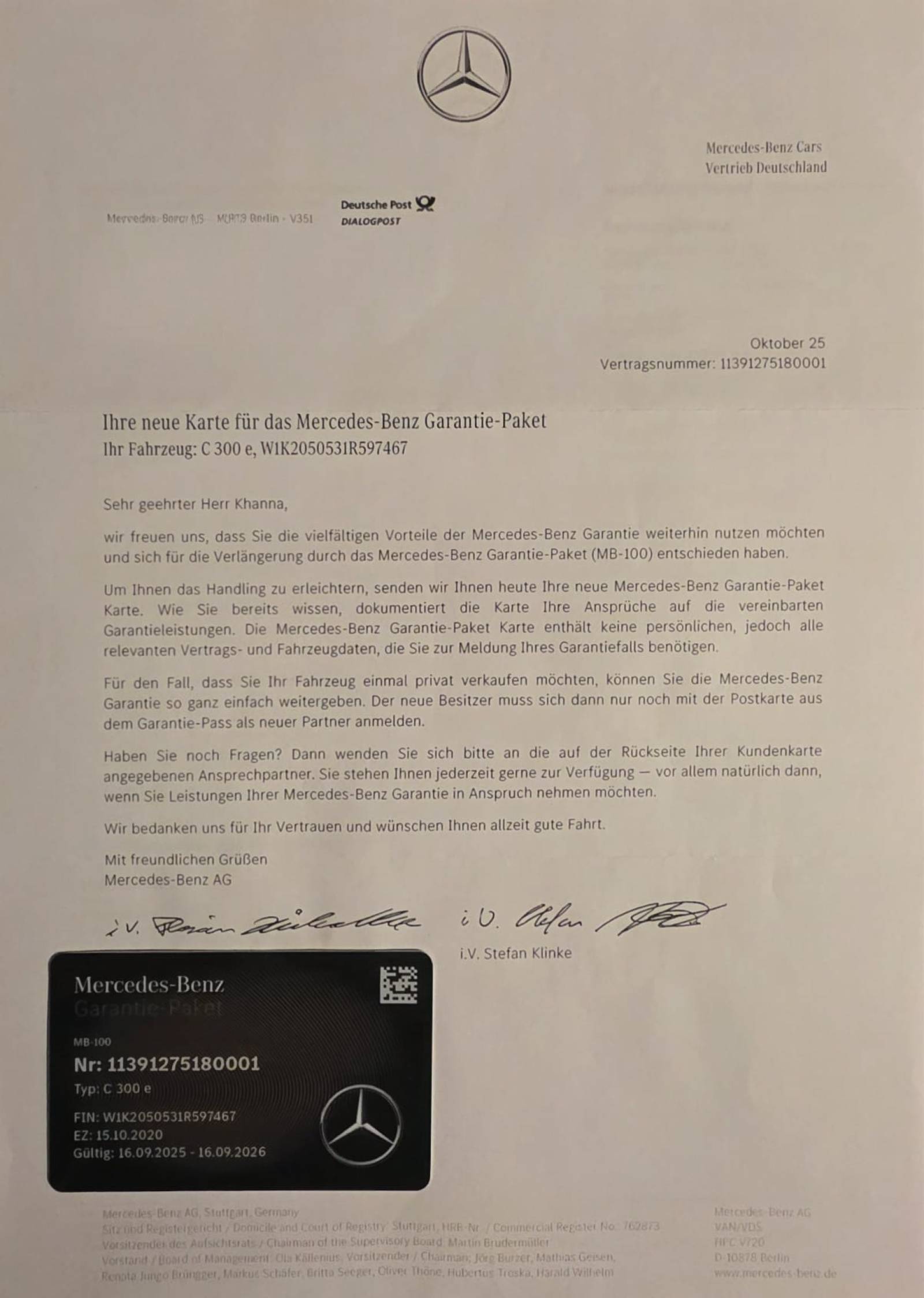 Das Fahrzeug hat noch Mercedes Garantie Paket MB-100 bis Sep 2026.