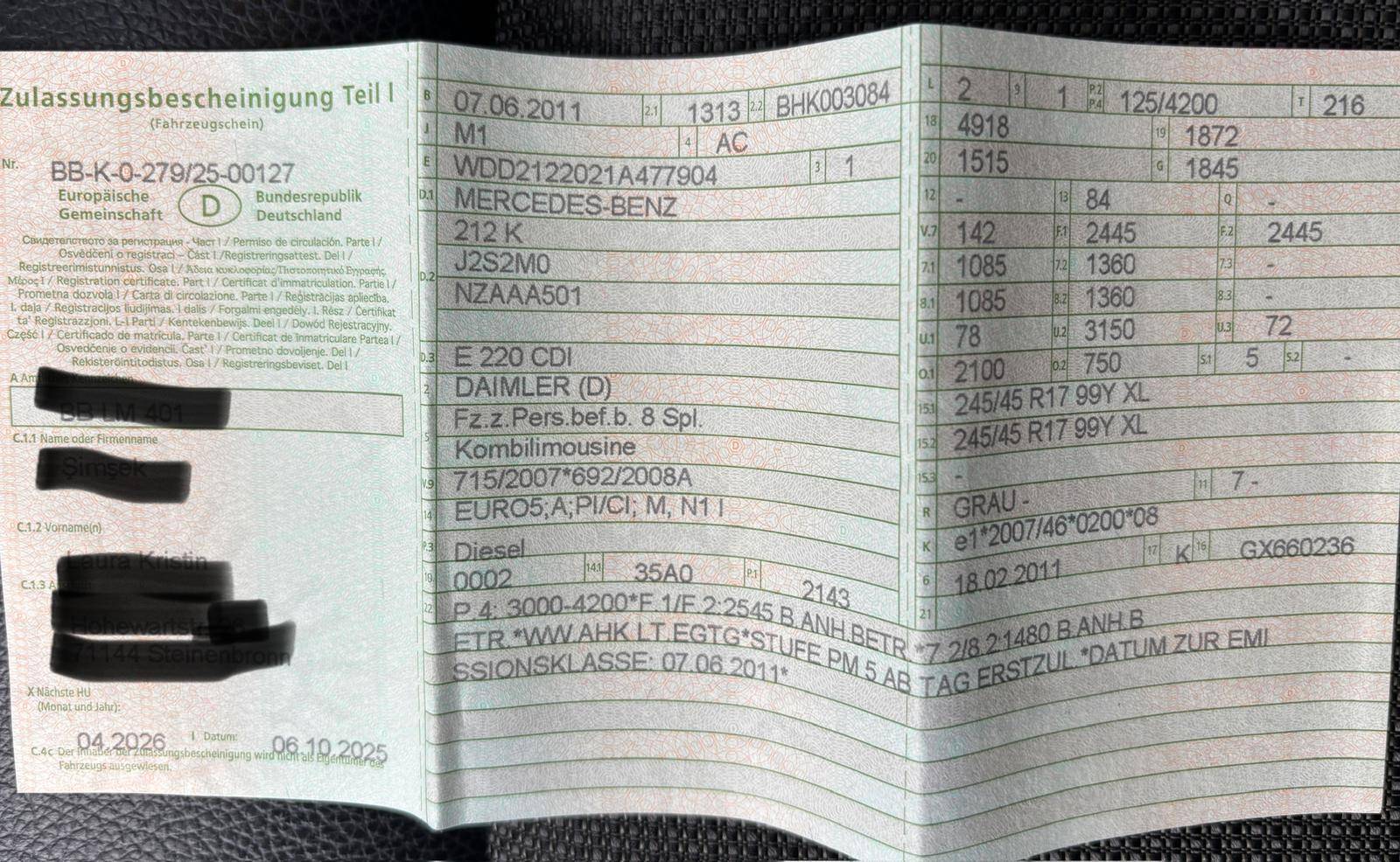 | Fahrgestellnummer: | WDD2122021A477904 |
