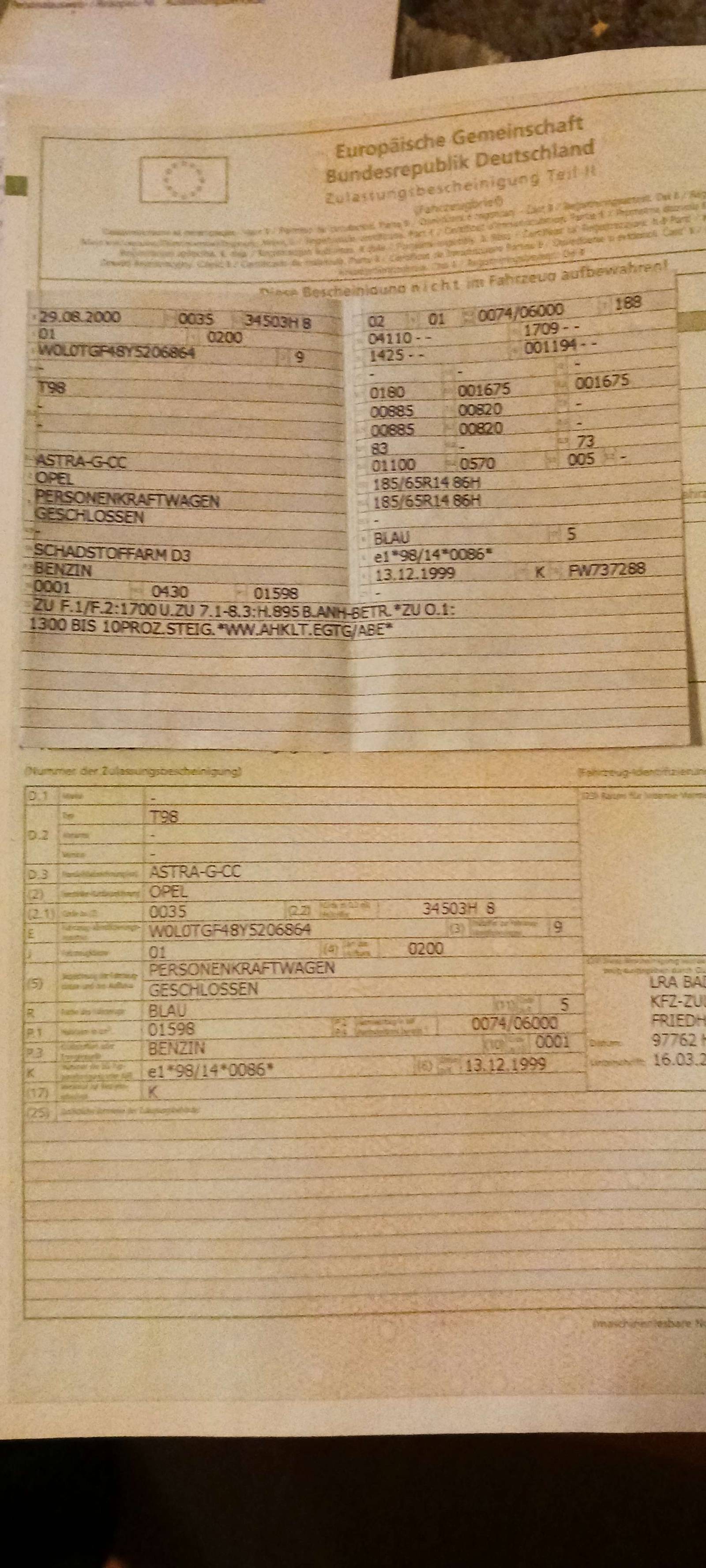 | Fahrgestellnummer: | W0L0TGF48Y5206864 |