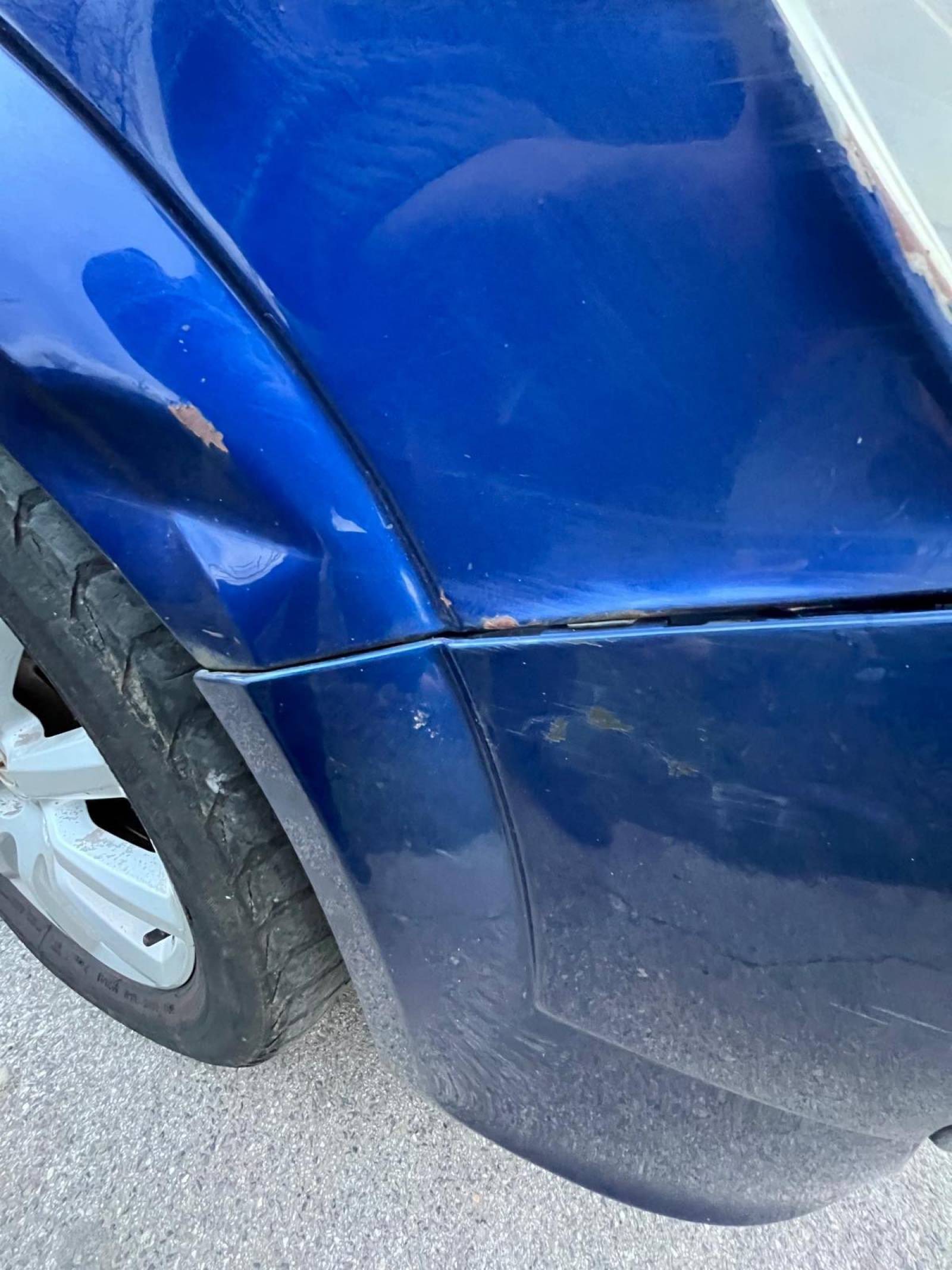 Vorne links befindet sich eine Beule im Kotflügel (kein schwerer Schaden).