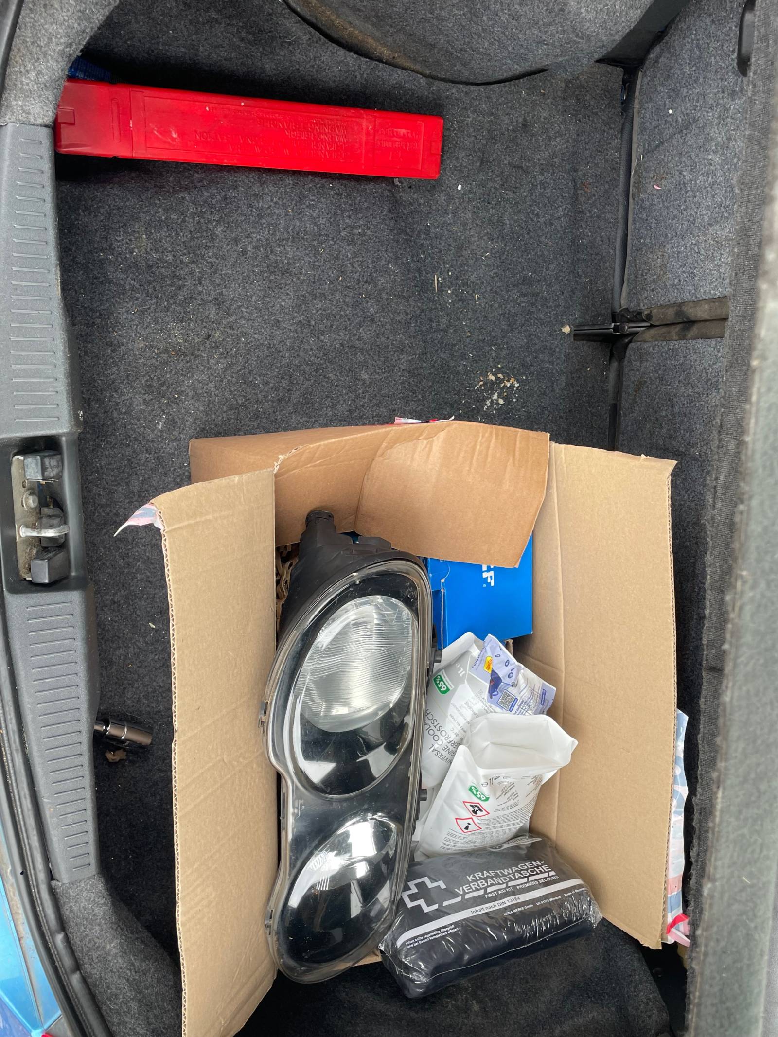 Jedes Teil befindet sich im Kofferraum bis auf die Bremse und das benötige Teil zur Reparatur des Kofferraums.