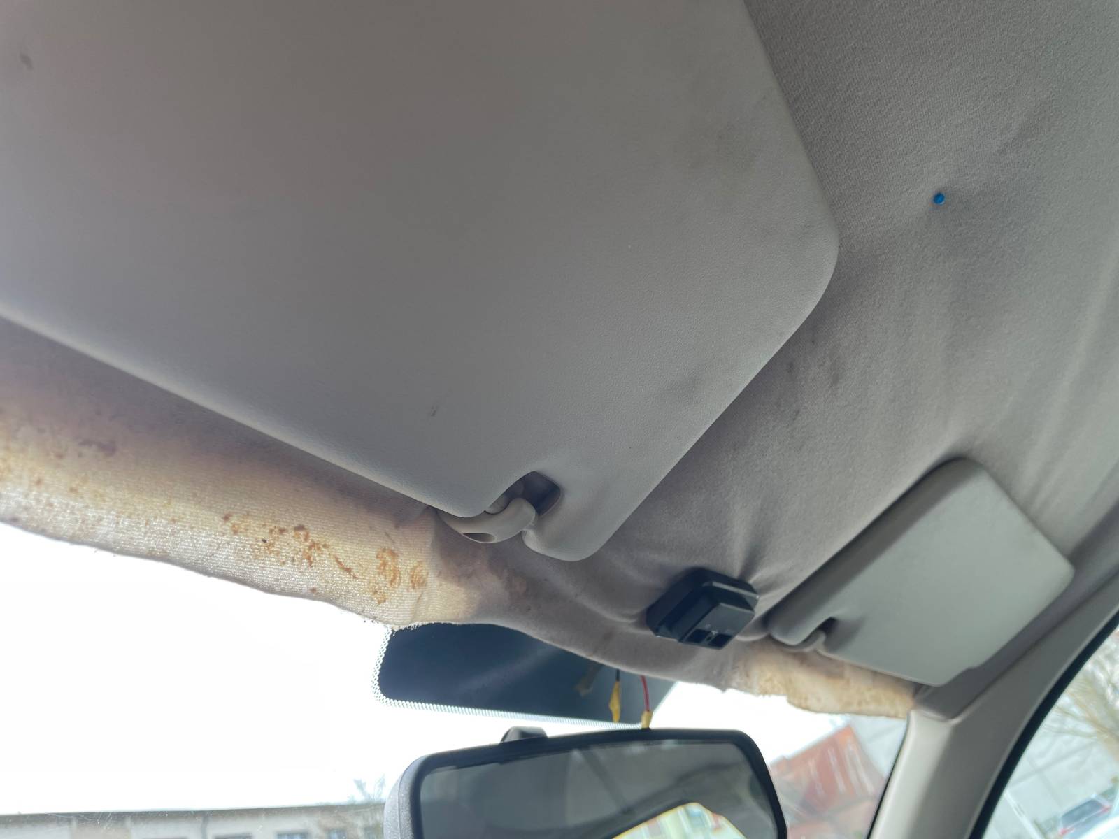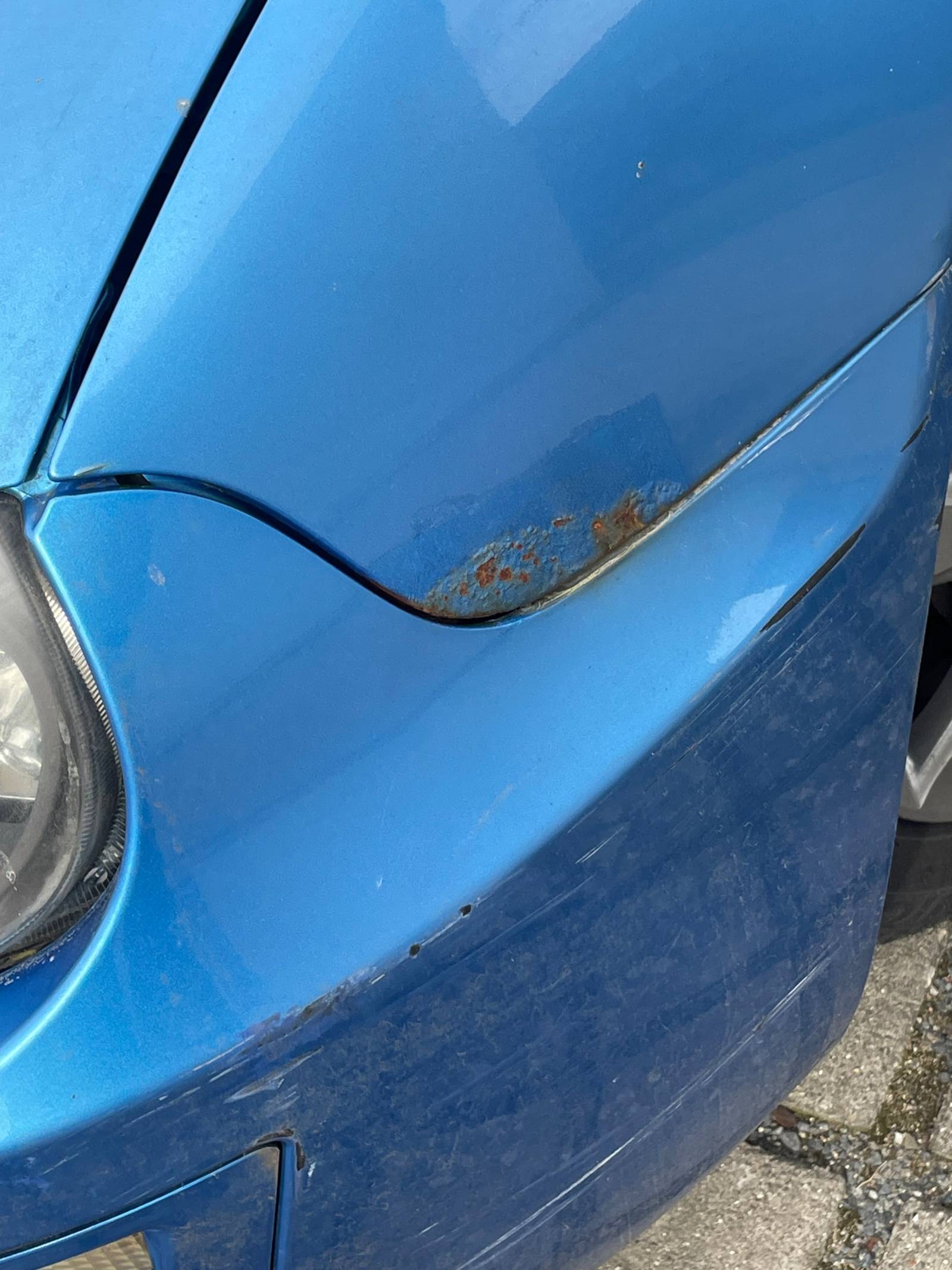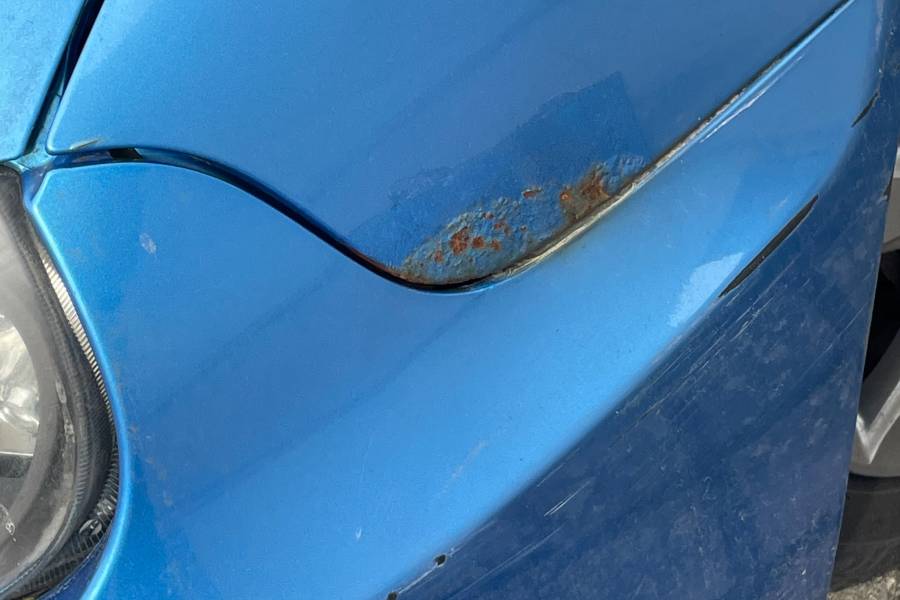 Der Motor läuft ruhig (für das Alter), Bereifung ist ein Jahr alt. Der Himmel löst sich langsam, es liegt ein Kabel für eine Dashcam im Fahrzeug und es befinden sich Roststellen auf dem Kfz