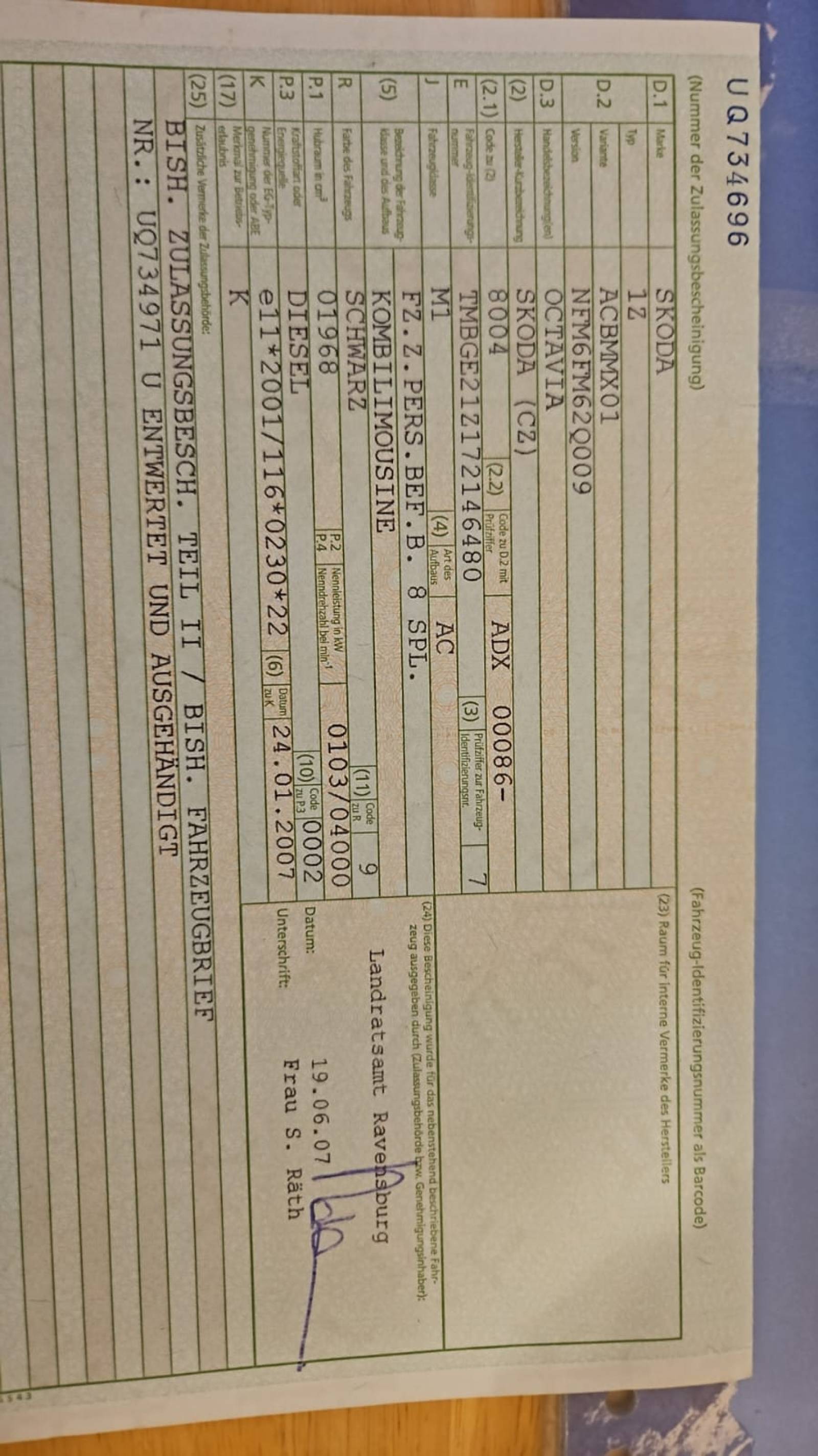 | Verfügbarkeit des Fahrzeugbriefs | Keine Angabe |