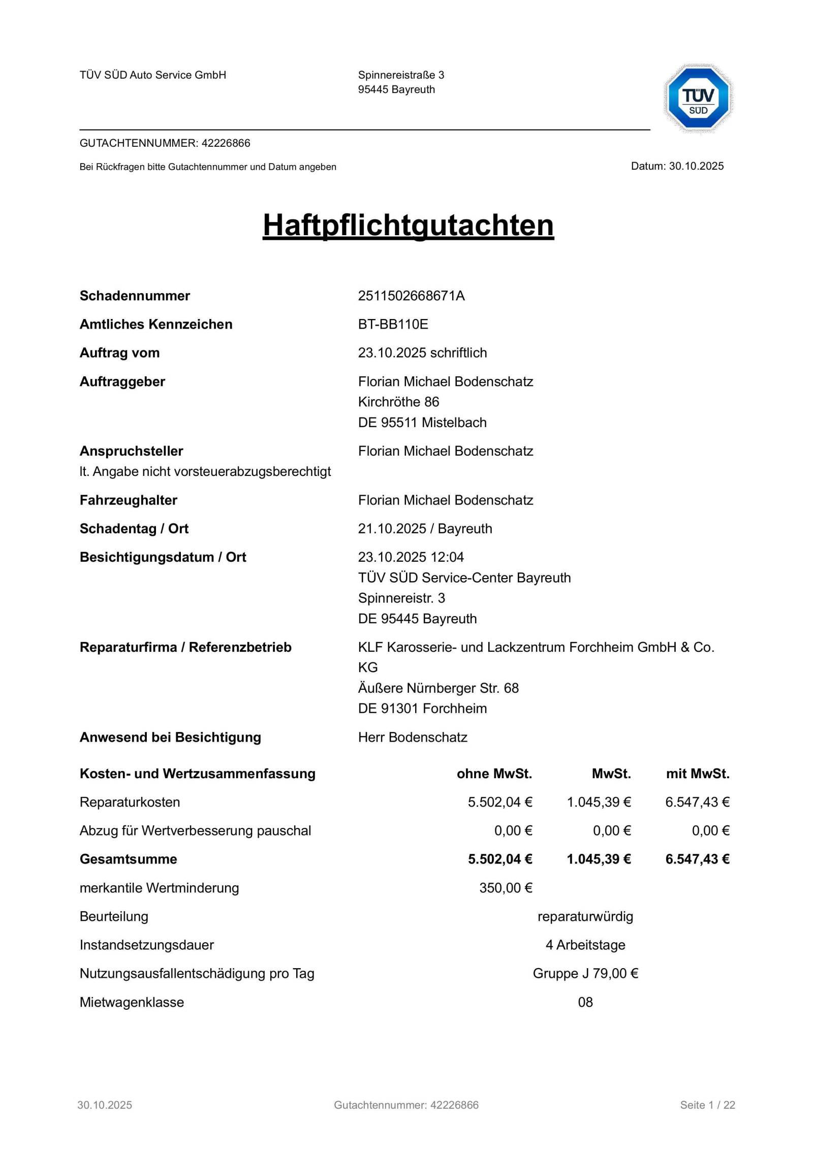 Unfallgutachten kann ich gerne als PDF senden