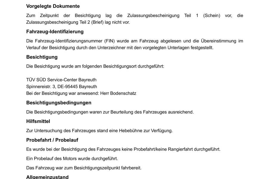 | Verfügbarkeit des Fahrzeugbriefs | Der Fahrzeugbrief liegt noch bei der Bank |