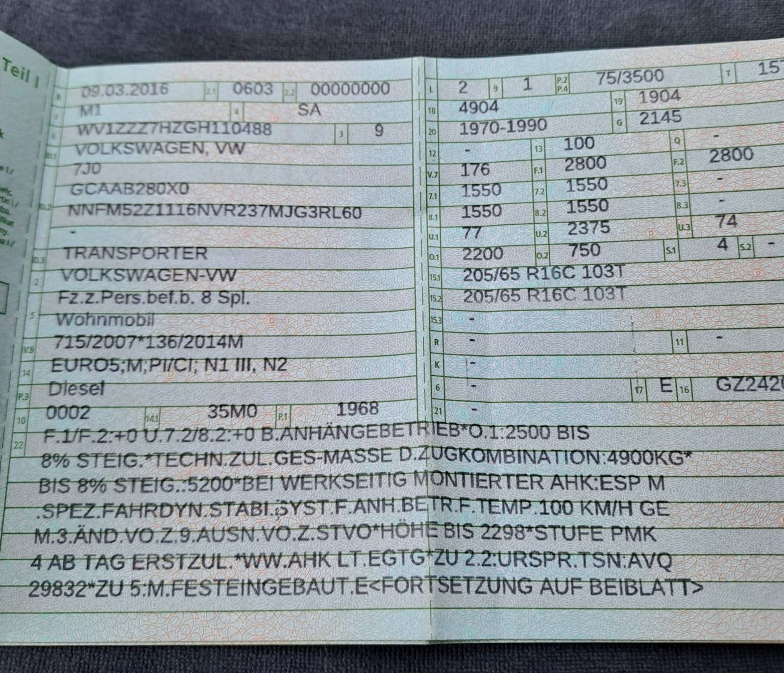 | Fahrgestellnummer: | WV1ZZZ7HZGH110488 |