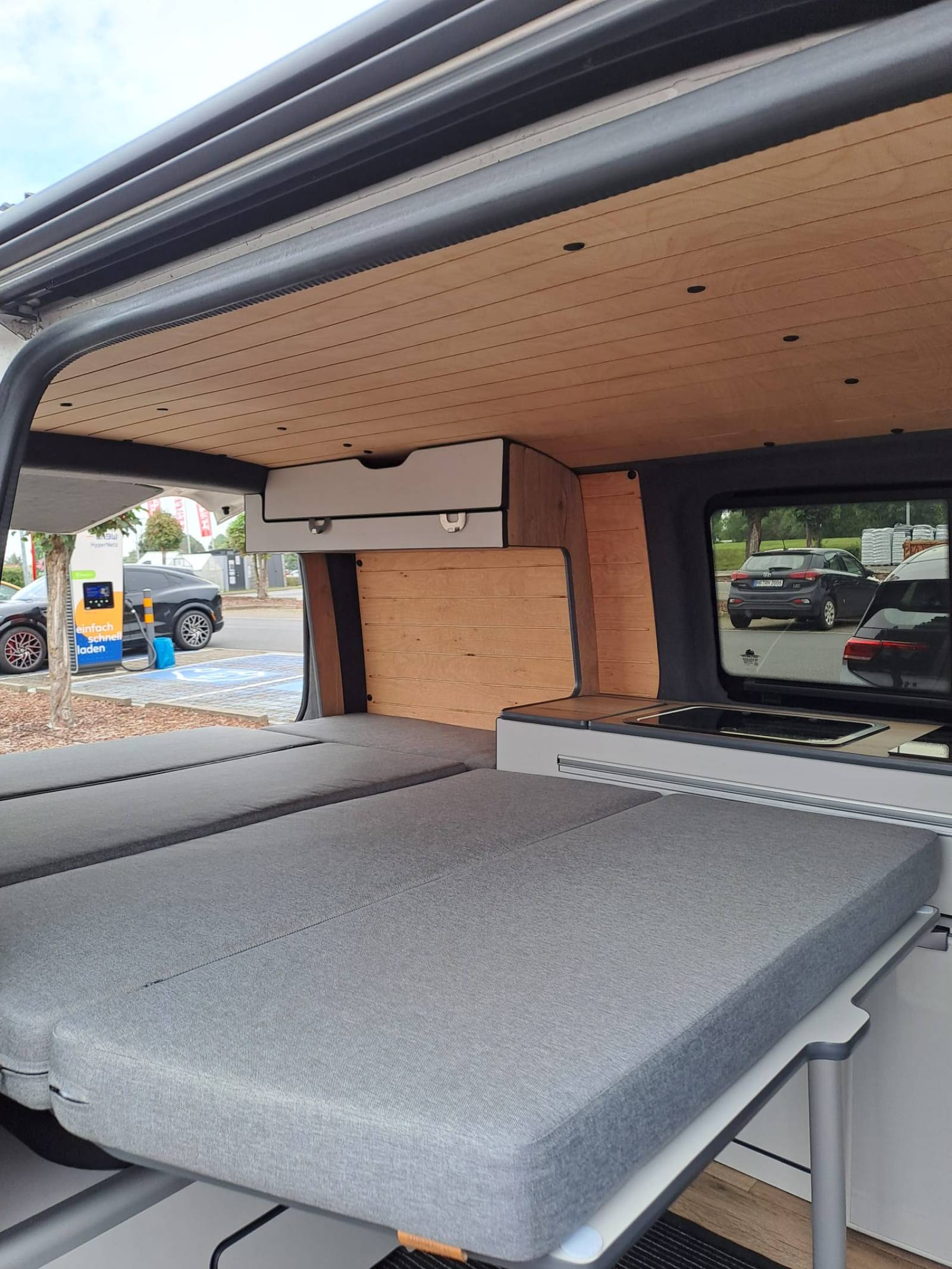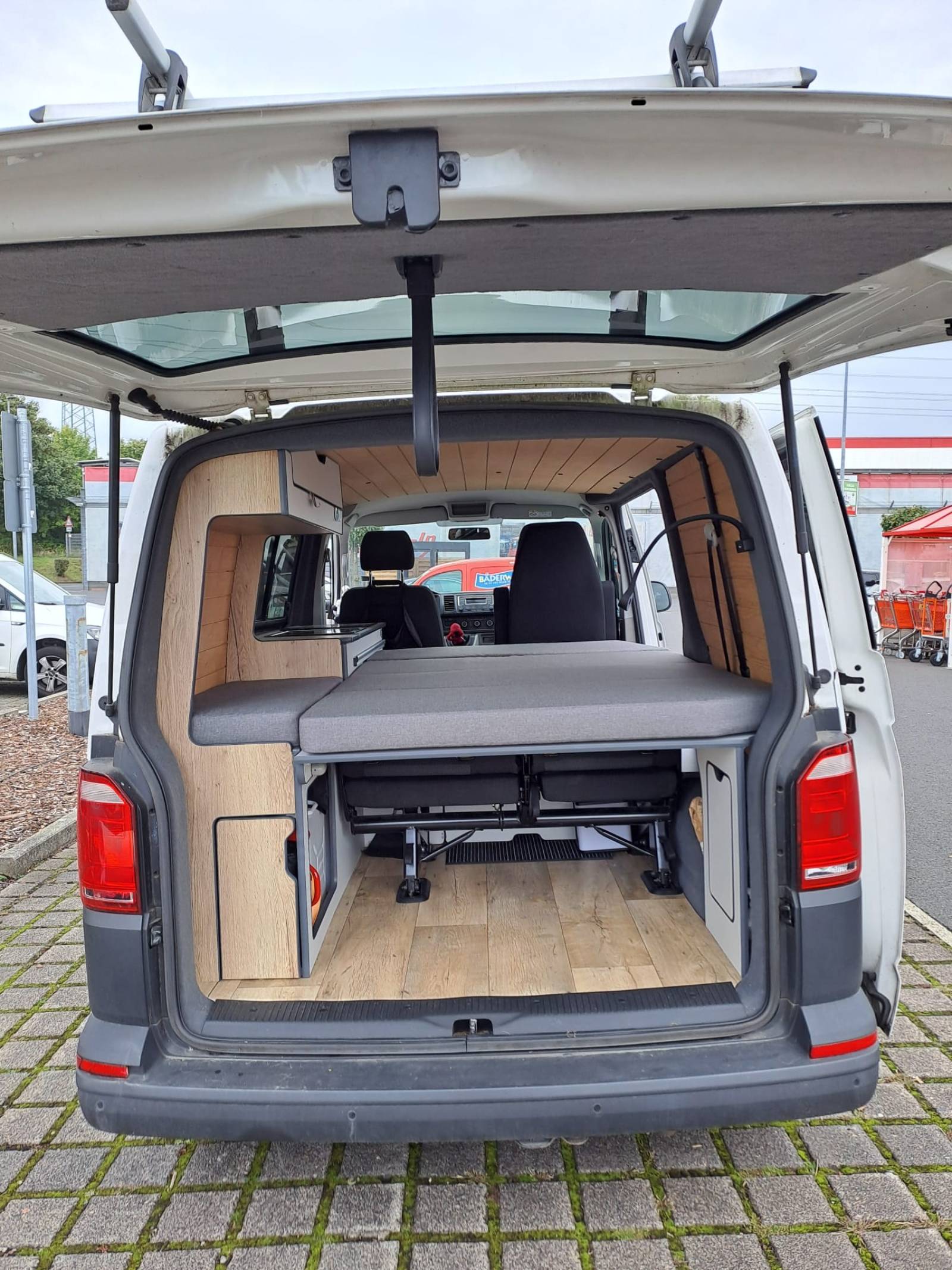 Umgebaut zum WoMo, mit Kühlschrank, Waschbecken, Induktionskochfeld, Standlheizung (Truma), Thule Fahrradträger für 2Bikes, Schlaffläche 120x195,