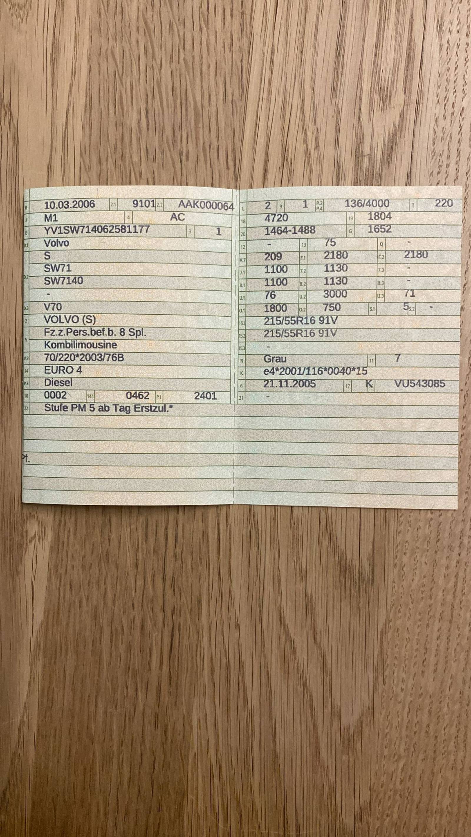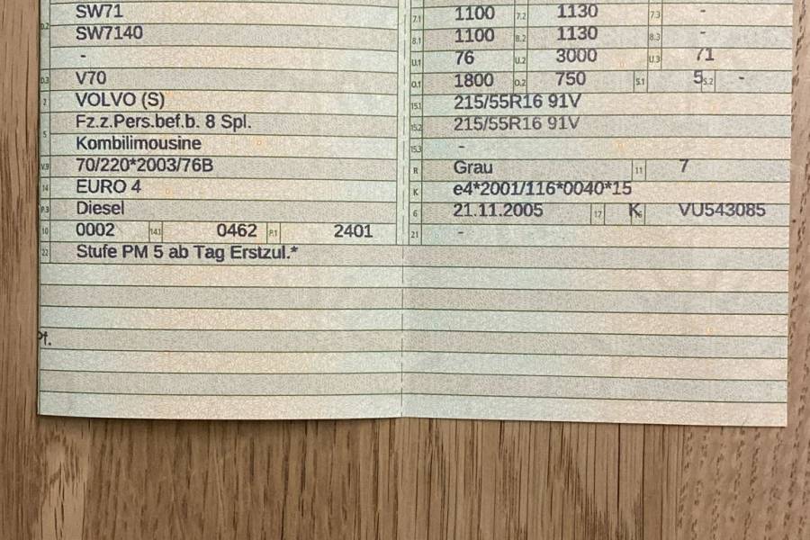 | Fahrgestellnummer: | YV1SW714062581177 |