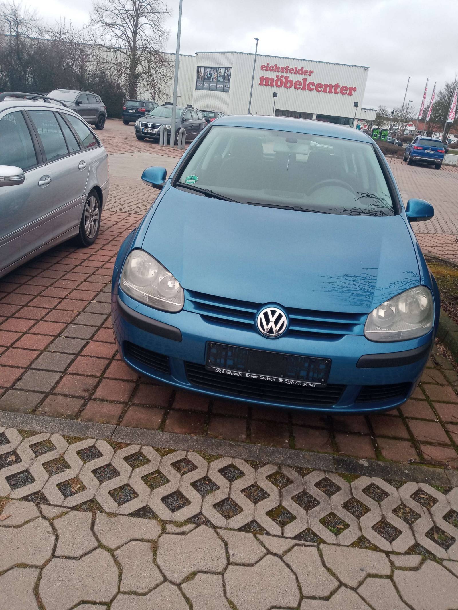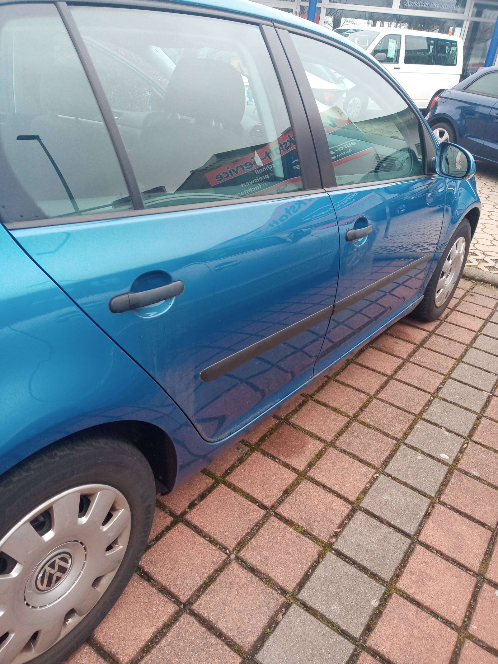 Golf blau mit 5 Türen, im guten Zustand, hat ein paar Hagelschäden auf dem Dach und im Vorderen Teil des Auto, kaum sichtbar