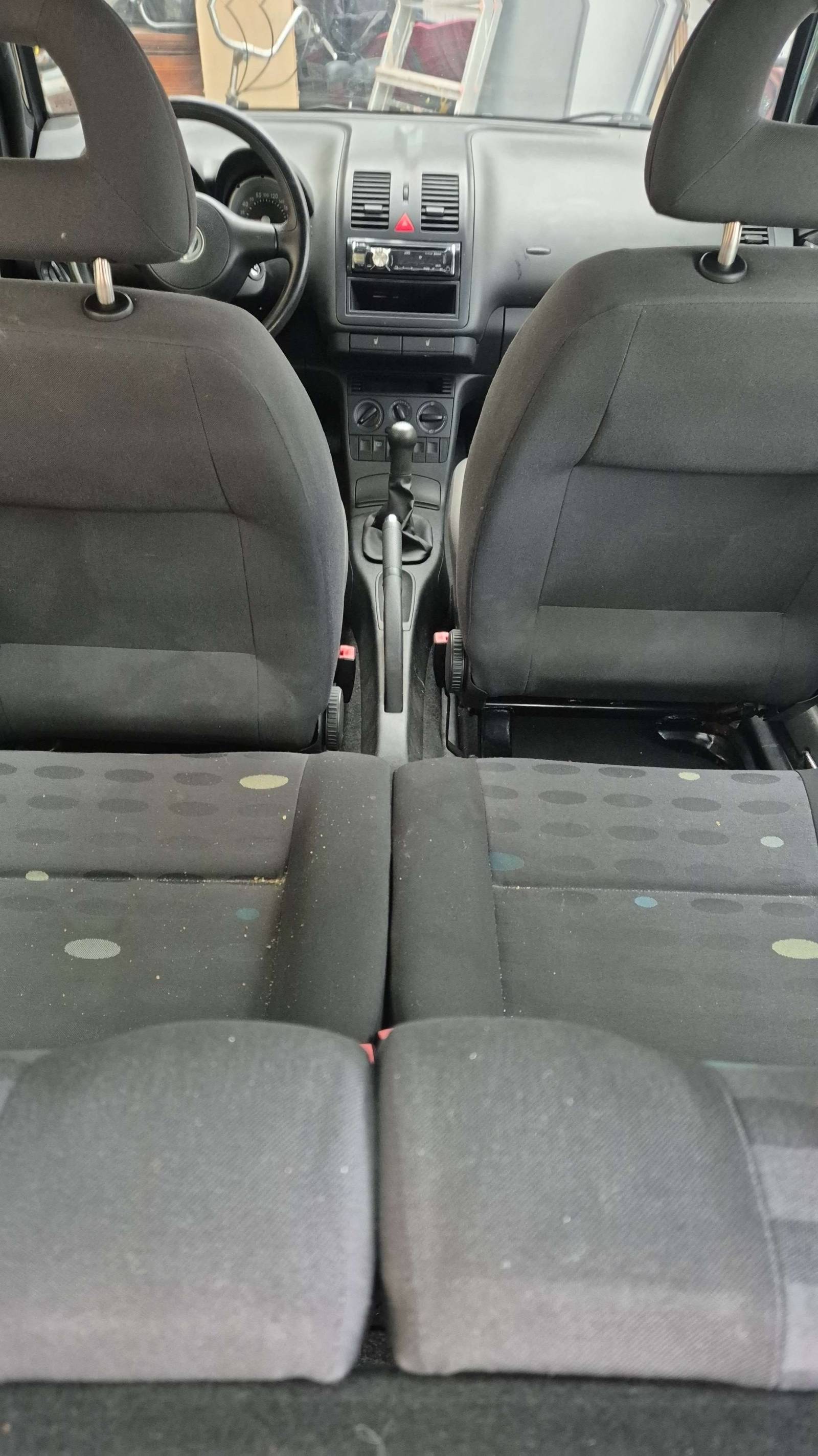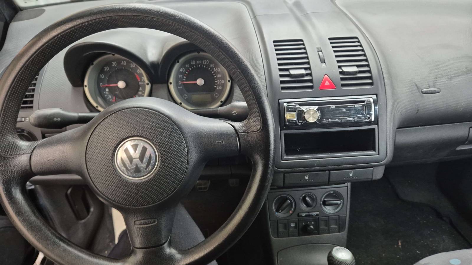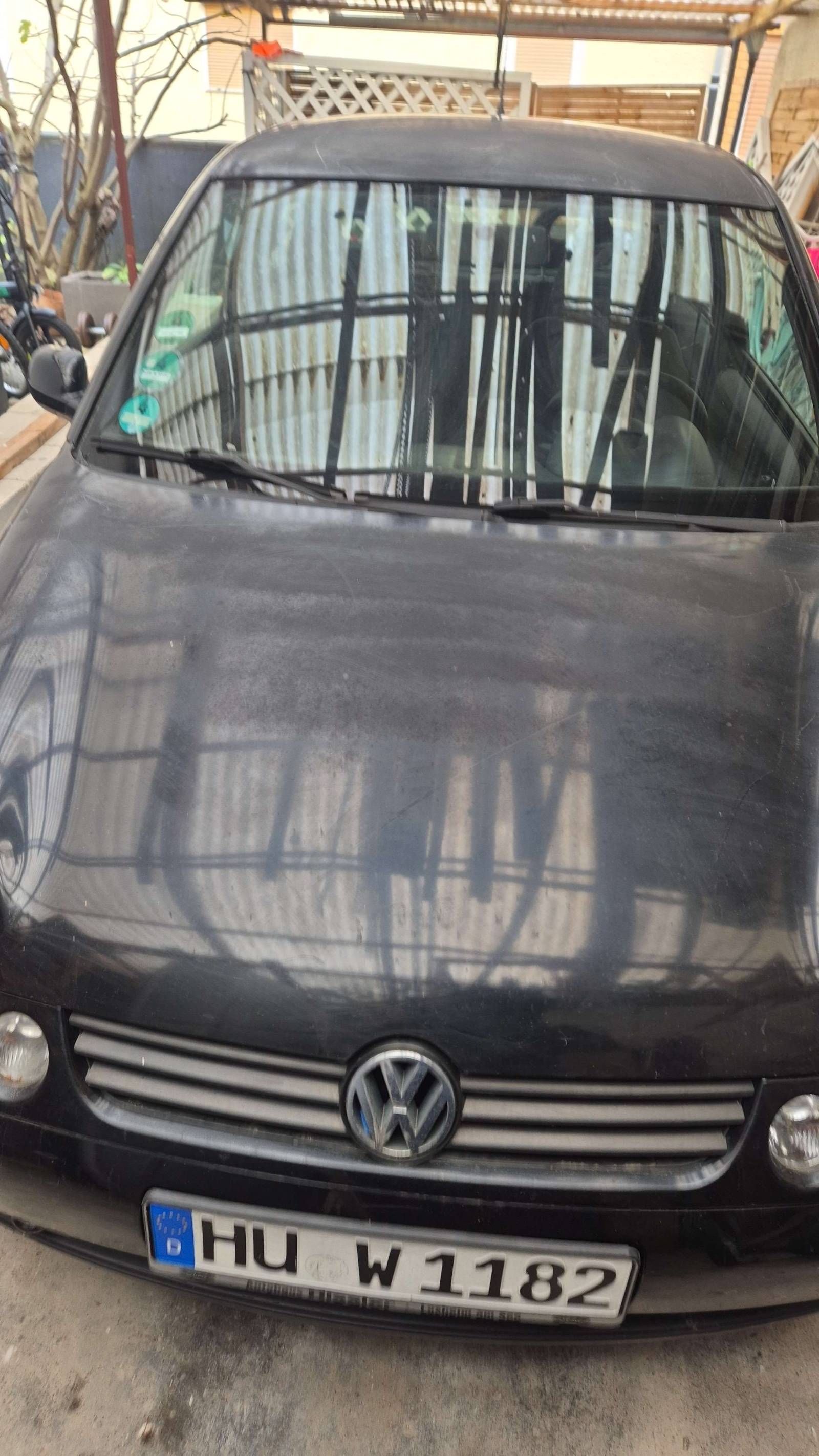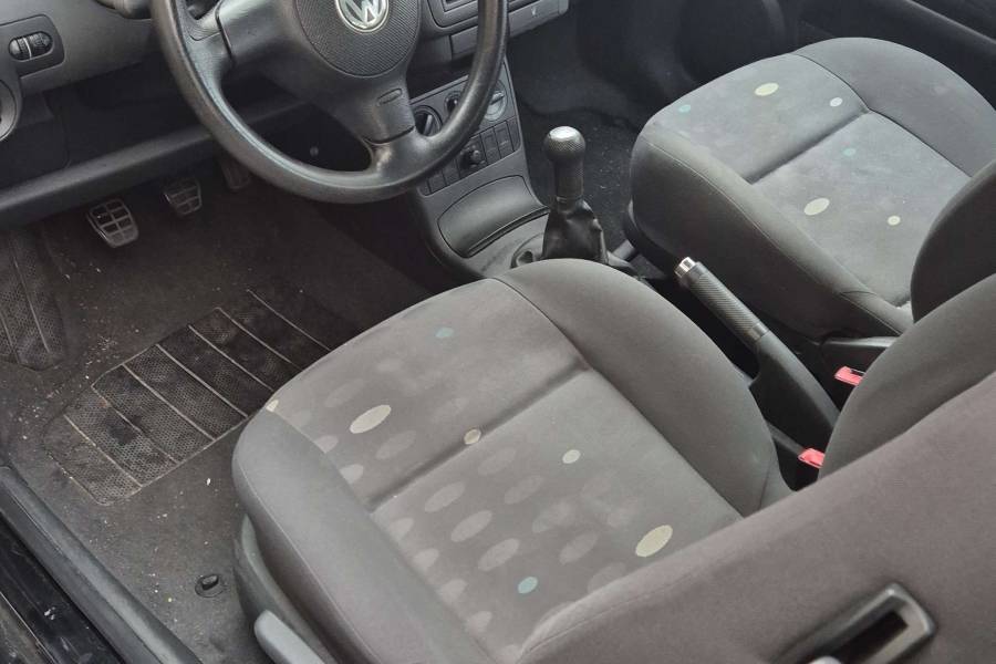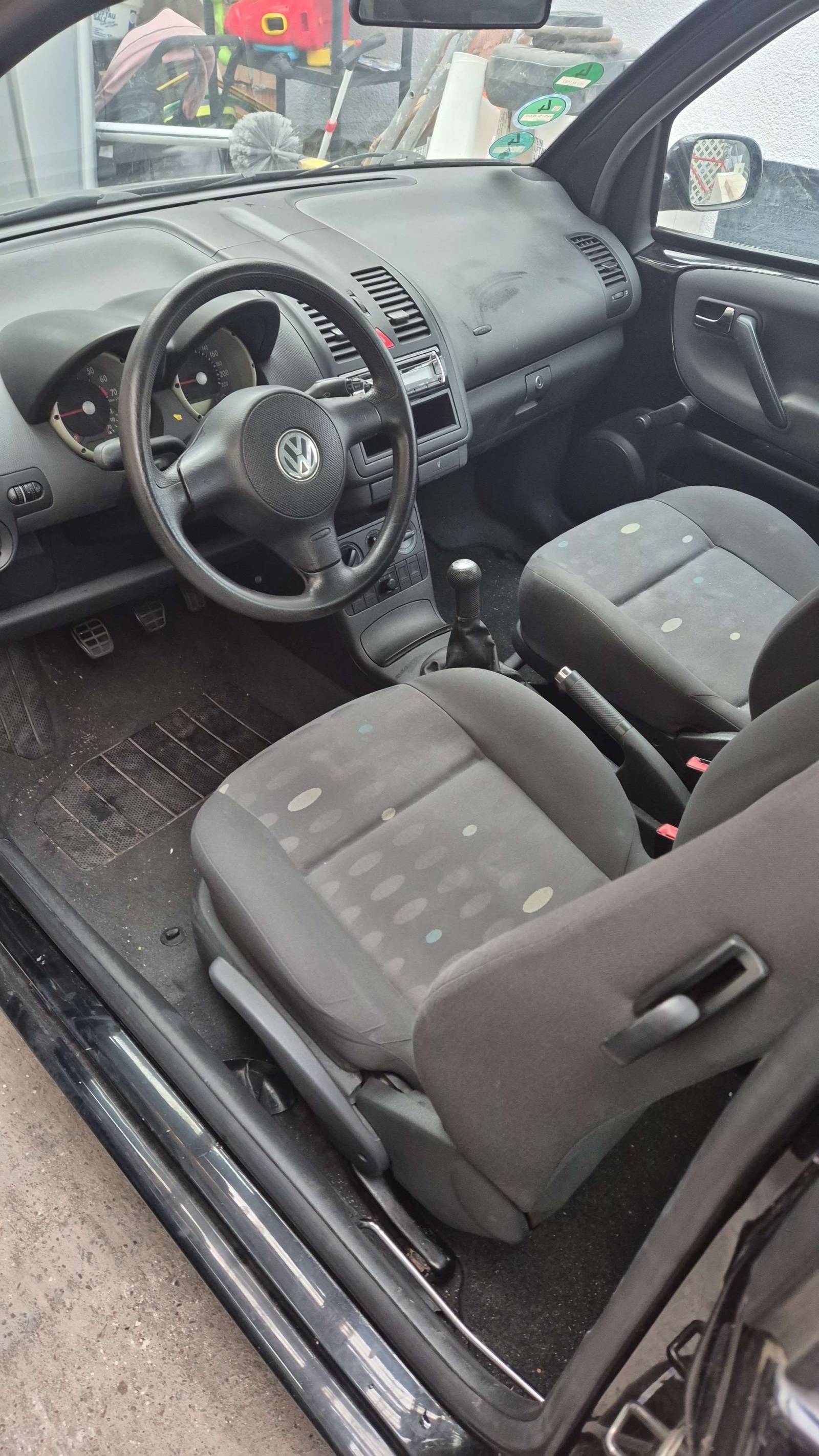 Der Lupo hat die Außenfarbe schwarz unddunkelgraue Stoffsitze!