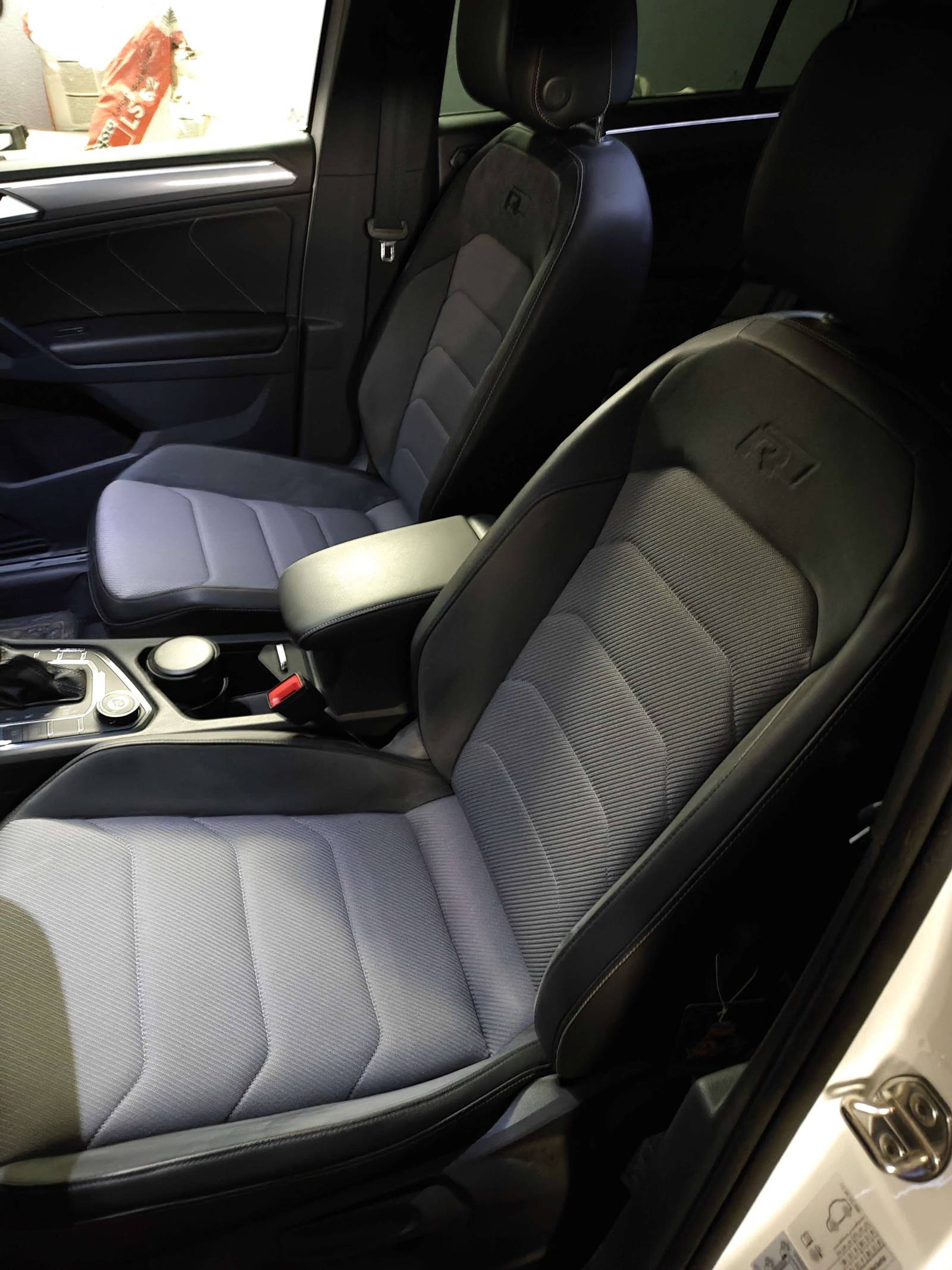 Sitzmittelbahnen der Vordersitze und der äußeren Rücksitze in Stoff "Race", -innenwangen in Mikrofaser "San Remo"